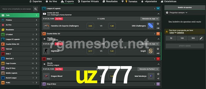 O uz777 oferece uma grande seleção de opções de apostas em e-sports com probabilidades competitivas